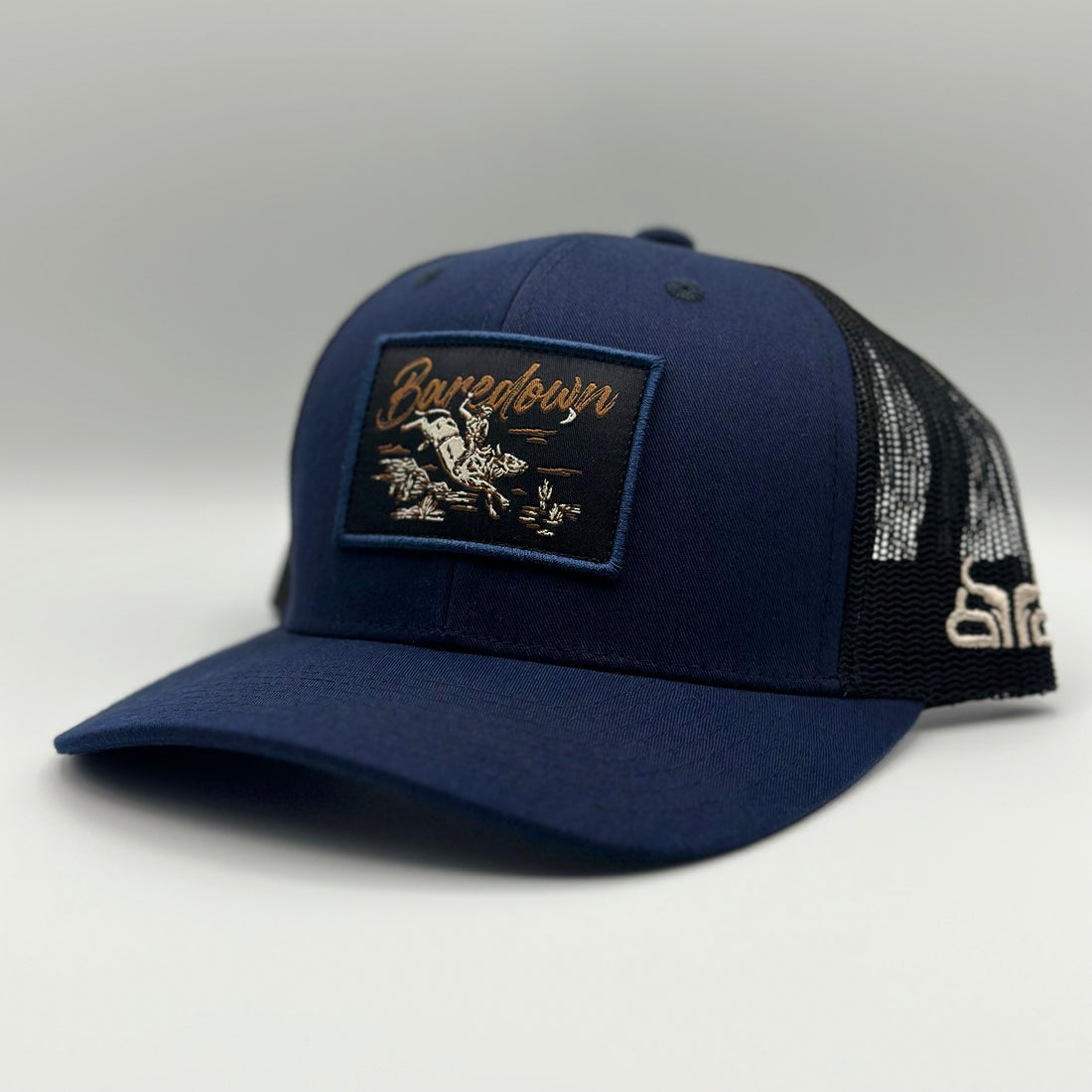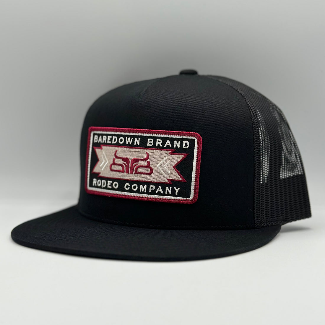 Baseball cap with Baredown logo embroidered on front, Baredown stitched on left side. Snap back...